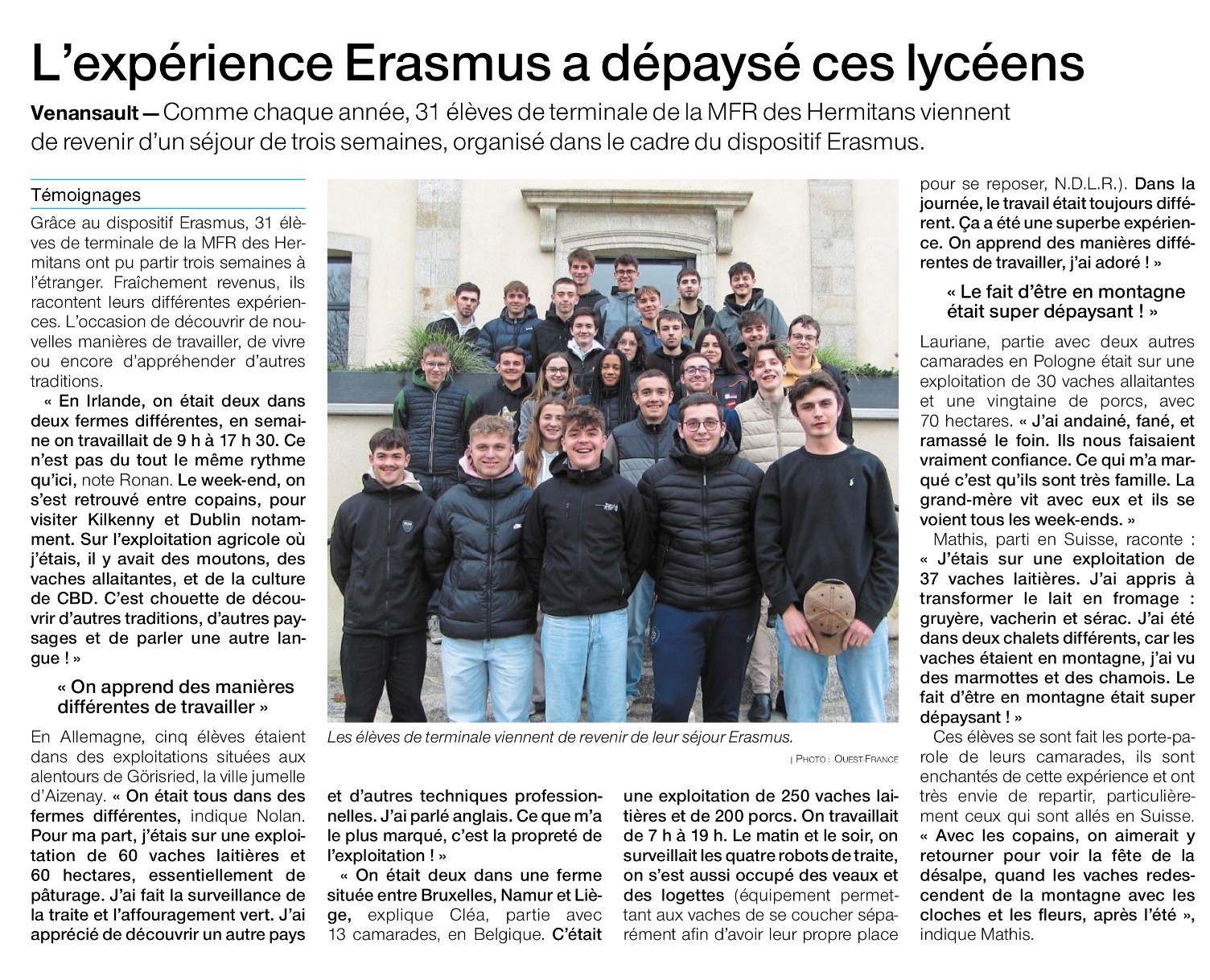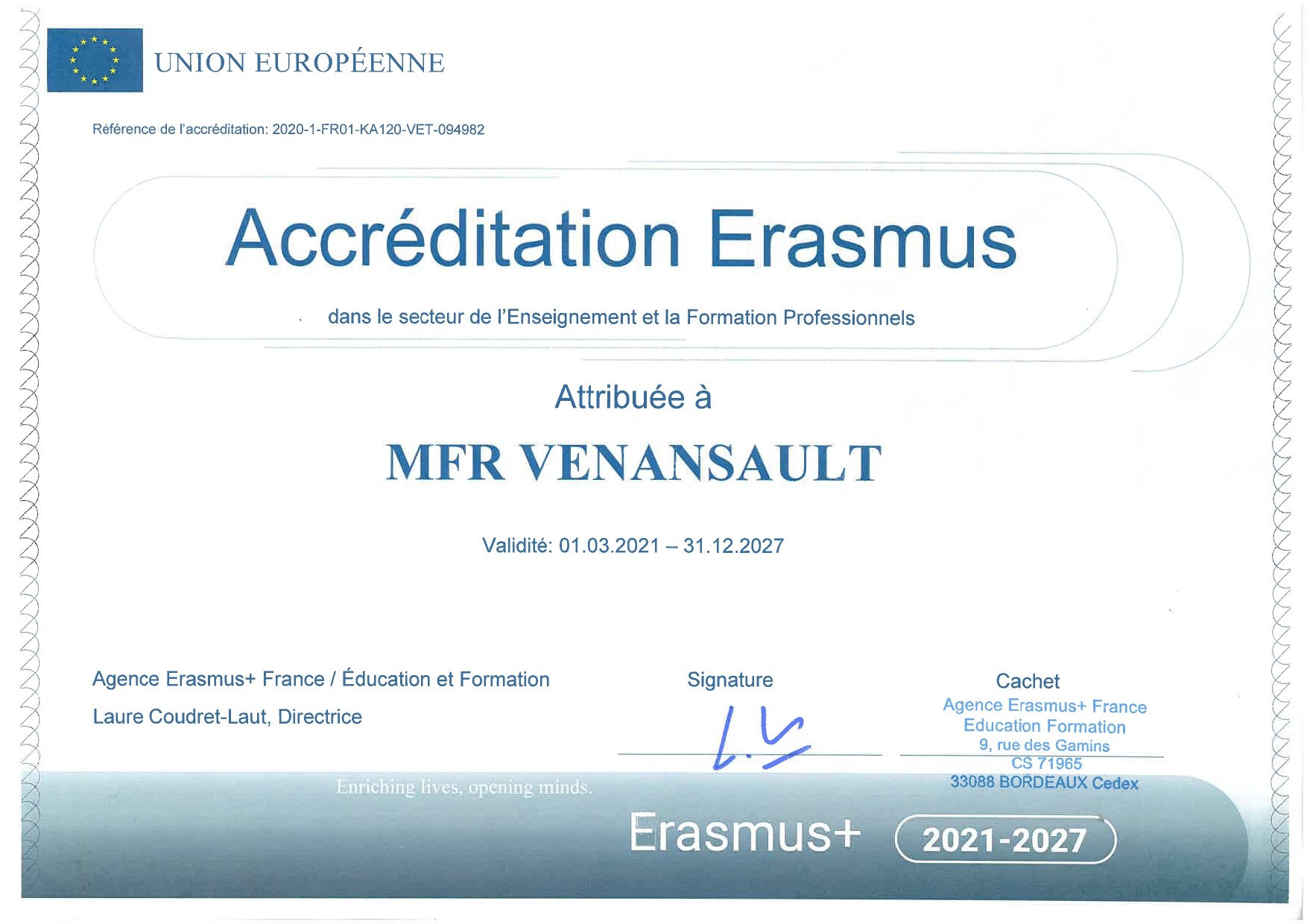 La consolidation de la dimension européenne de notre établissement scolaire est également renforcée par l’accréditation ERASMUS + que la MFR a obtenu en 2021.